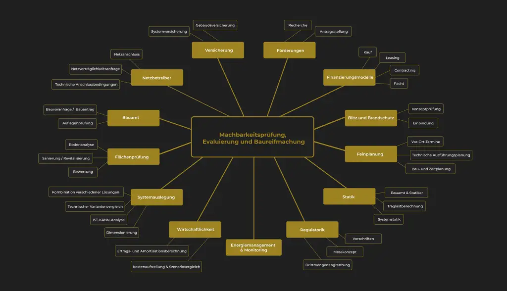 Wir prüfen Ihr Vorhaben auf technische, wirtschaftliche und rechtliche Machbarkeit – und schaffen die Grundlage für ein tragfähiges, realisierbares Projekt. Dazu analysieren wir verschiedene Auslegungsoptionen, bewerten sie hinsichtlich Sinnhaftigkeit, Rentabilität und Zielerreichung – und führen Ihr Projekt strukturiert in einen baureifen Zustand.